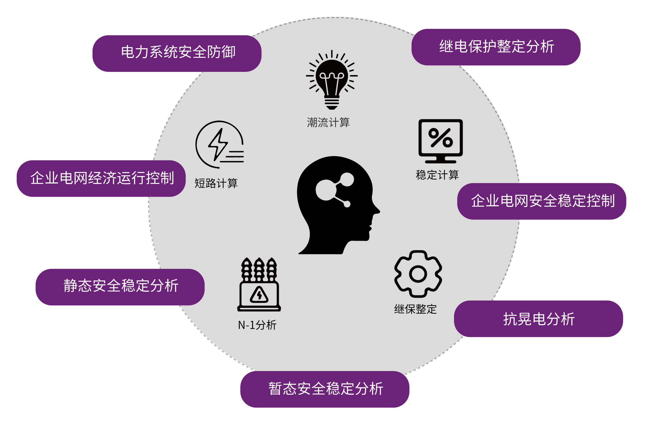 通过企业电网静态安全分析、暂态安全分析、短路电流分析、继电保护整定与校核等分析手段,进行电网结构治理、专项自动化系统建设、技术装备升级等,实现企业电网的经济运行控制与安全稳定控制,保障企业电网的安全、经济、可靠运行。